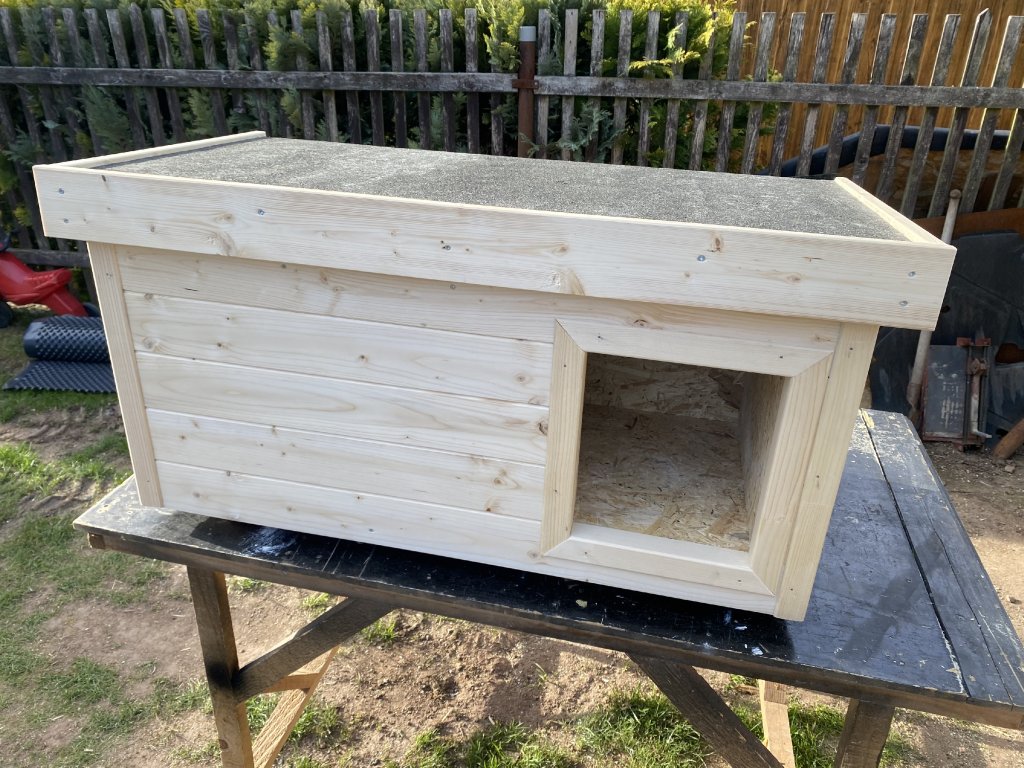 Celkový rozměr boudy včetně přesahu střechy je 68x128cm při výšce 62cm.