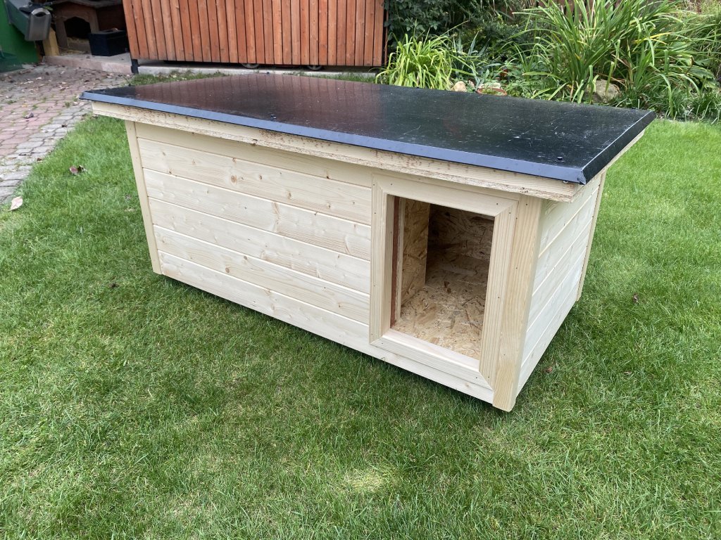 Celkový rozměr boudy včetně přesahu střechy je 98x188cm při výšce 98cm.